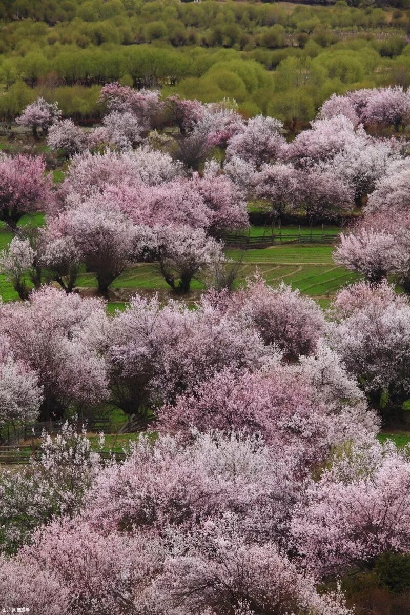 以远处山峰的皑皑白雪为背景,如醉霞绯云般地争相斗艳,粉嫩的桃花在气势磅礴的雪山中无限柔媚,再过一段日子,中国最美的春天将如约而至。