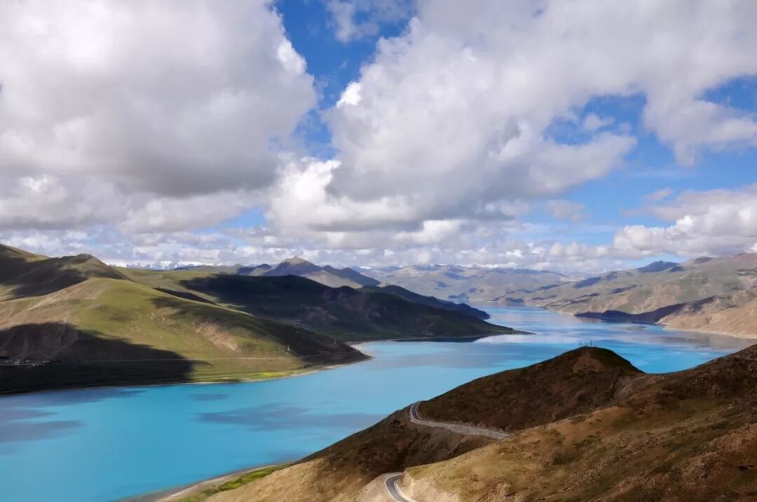 羊卓雍措,又称羊湖,作为西藏三大圣湖之一,也是喜马拉雅山北麓最大的内陆湖,藏语意为“碧玉湖”、“天鹅池”,不规则的形状蜿蜒曲折,像珊瑚,因此,它在藏语中又被称为“上面的珊瑚湖”。湖面颜色随着天气和季节的变化而不同,其湖光山色之美,冠绝藏南。